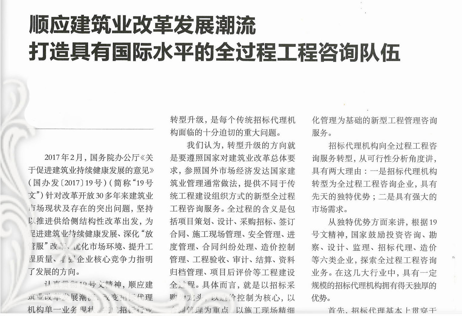 順應建筑業(yè)改革發(fā)展潮流打造具有國際水平的全過程工程咨詢隊伍