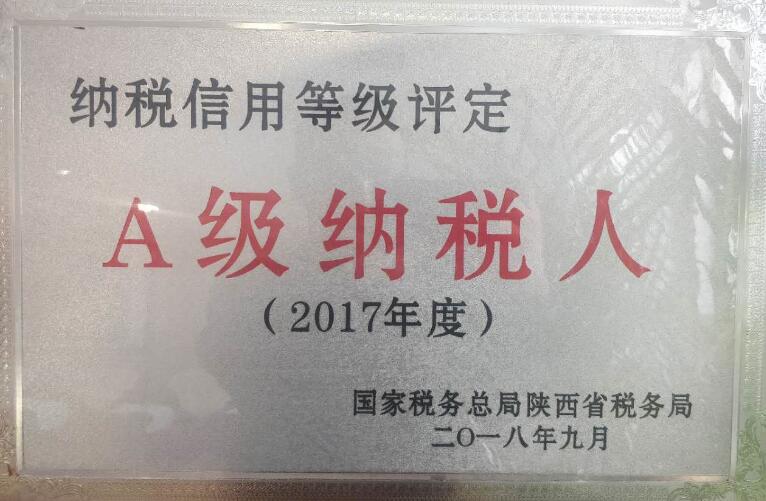 熱烈祝賀我公司榮獲國(guó)家稅務(wù)總局陜西省稅務(wù)局評(píng)定的“2017年度納稅信用等級(jí)評(píng)定A級(jí)納稅人”!凹{稅信用等級(jí)A級(jí)納稅人”是國(guó)家稅務(wù)總局陜西省稅務(wù)局授予信用良好企業(yè)的最高級(jí)別榮譽(yù)稱號(hào)。
