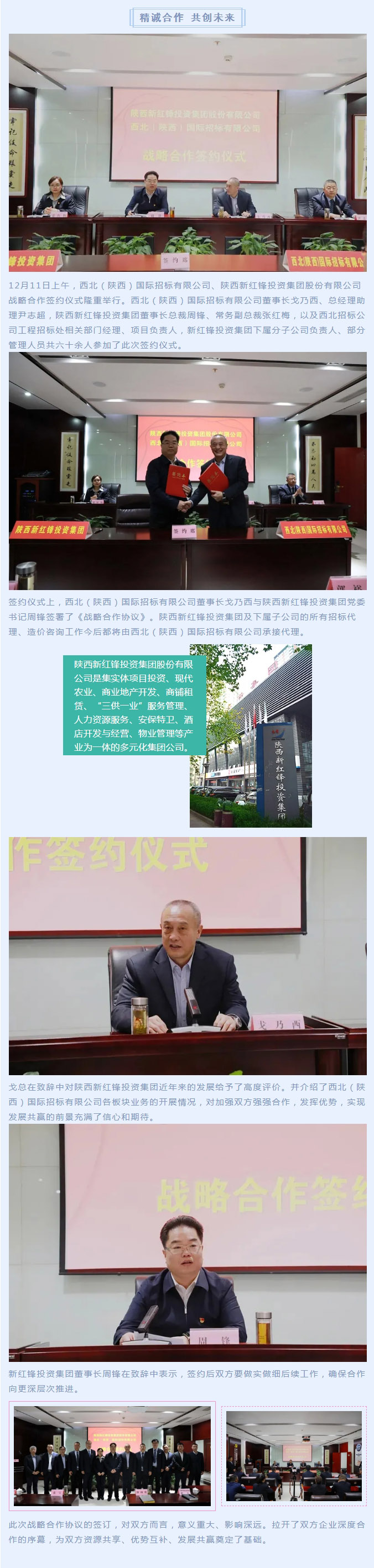 精誠合作 共創(chuàng)未來——西北(陜西)國際招標有限公司與陜西新紅鋒投資集團股份有限公司戰(zhàn)略合作簽約儀式隆重舉行