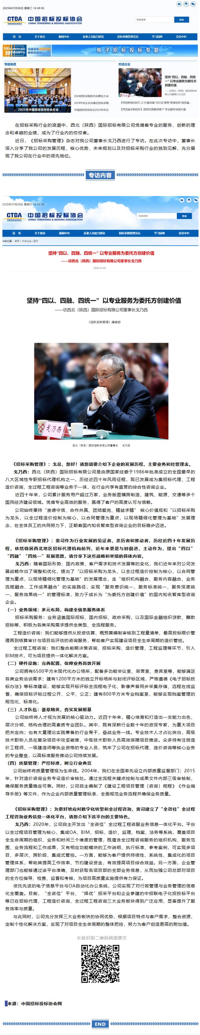 堅持“四以、四融、四統(tǒng)一” 以專業(yè)服務(wù)為委托方創(chuàng)建價值——西北國際招標(biāo)公司董事長戈乃西接受《招標(biāo)采購管理》雜志專訪