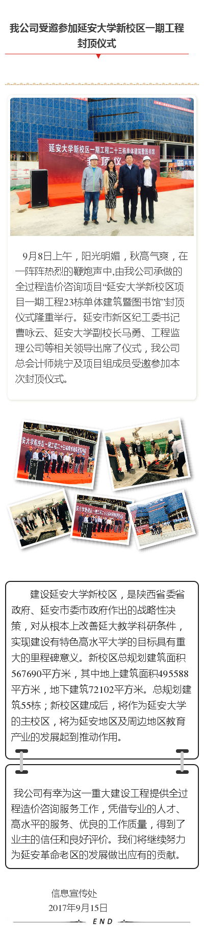 我公司受邀參加延安大學(xué)新校區(qū)一期工程封頂儀式