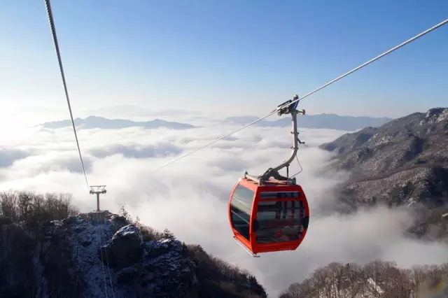 乘坐著景區(qū)索道纜車,全長2168米,高差916米,10分鐘便從清幽秀麗的峽谷,登上了雄渾壯觀的梁頂。