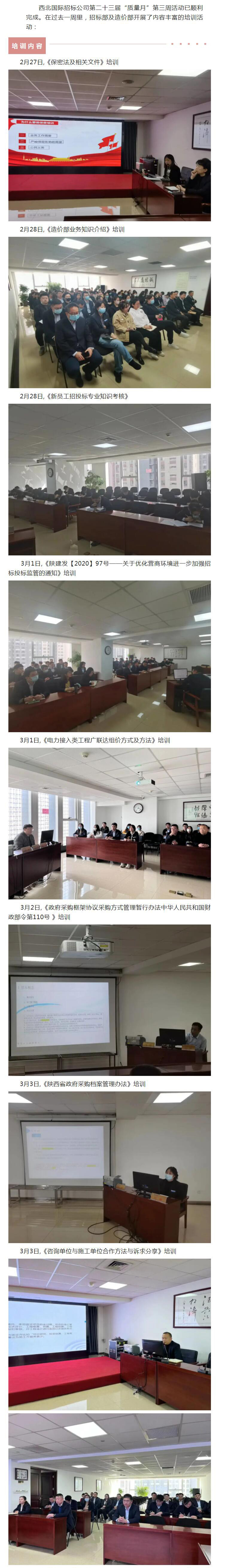 西北國際招標公司第二十三屆“”質(zhì)量月”培訓活動報道(第三周)