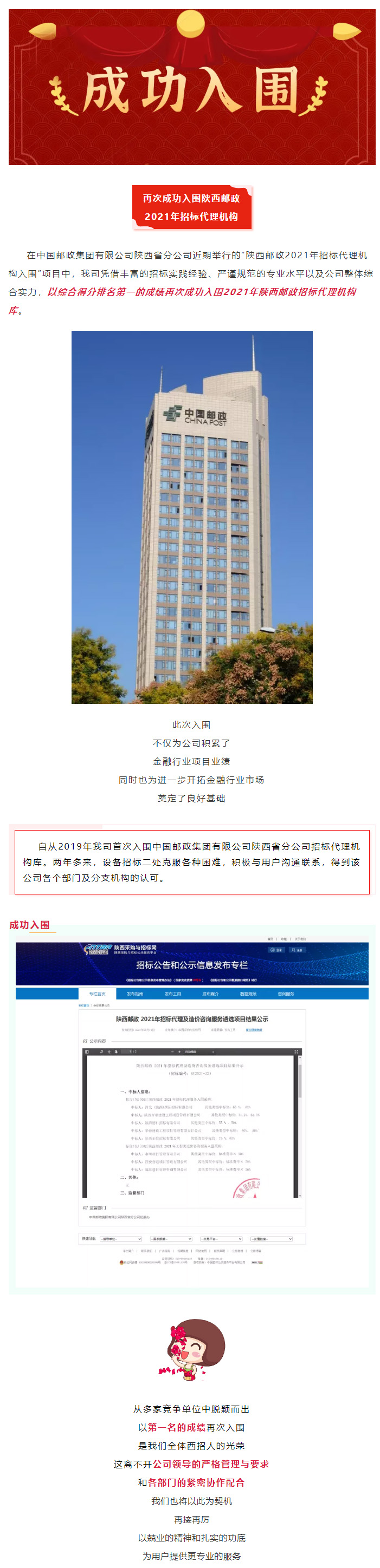 我公司再次成功入圍2021年陜西郵政招標代理機構(gòu)庫