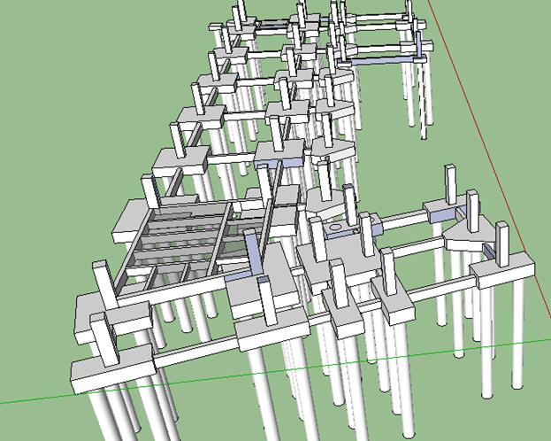 3、項(xiàng)目部成立BIM工作組對(duì)施工現(xiàn)場(chǎng)每一樓棟基礎(chǔ)BIM建模。因本項(xiàng)目依山而建,各棟教學(xué)樓標(biāo)高不一,且均有走廊連接,各棟樓之間如果出現(xiàn)標(biāo)高誤差后果嚴(yán)重。
