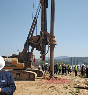 4、4月18日,組織施工單位、監(jiān)理單位、建設(shè)單位、設(shè)計(jì)單位、勘察單位進(jìn)行場(chǎng)地第一根長螺旋鉆孔灌注樁和旋挖鉆孔灌注樁試樁的施工。