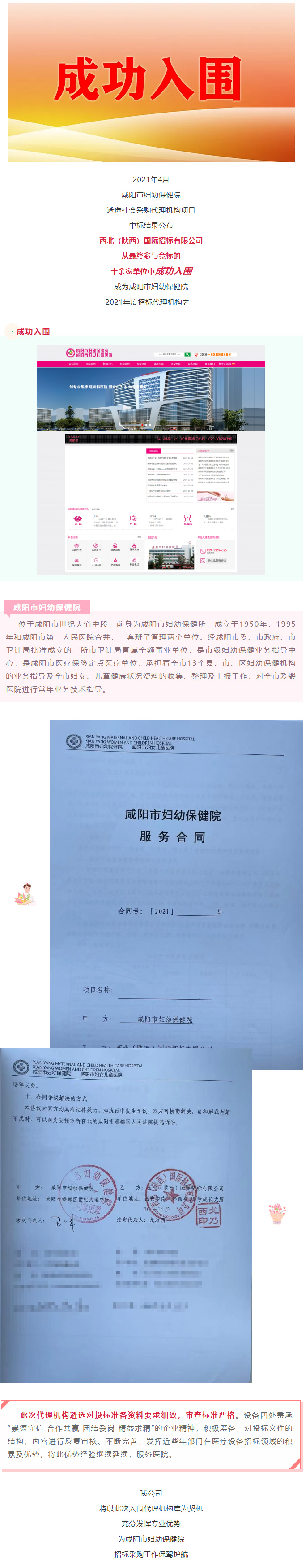 我公司成功入圍咸陽市婦幼保健院代理機(jī)構(gòu)庫