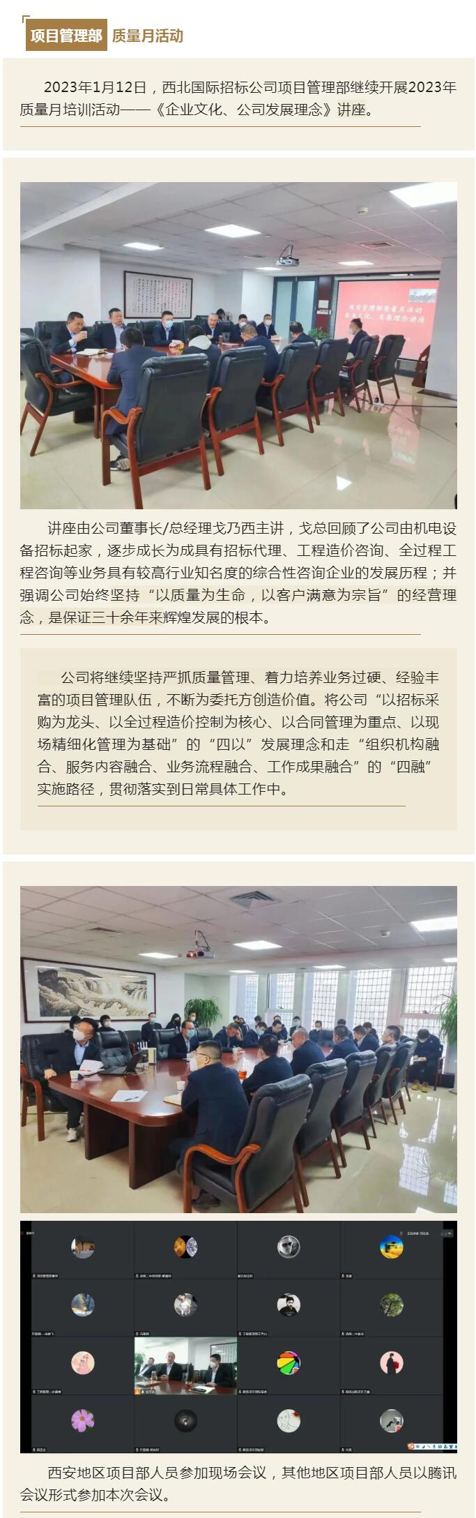 西北國際招標公司項目管理部舉行2022年度總結(jié)會暨“質(zhì)量月”活動啟動會